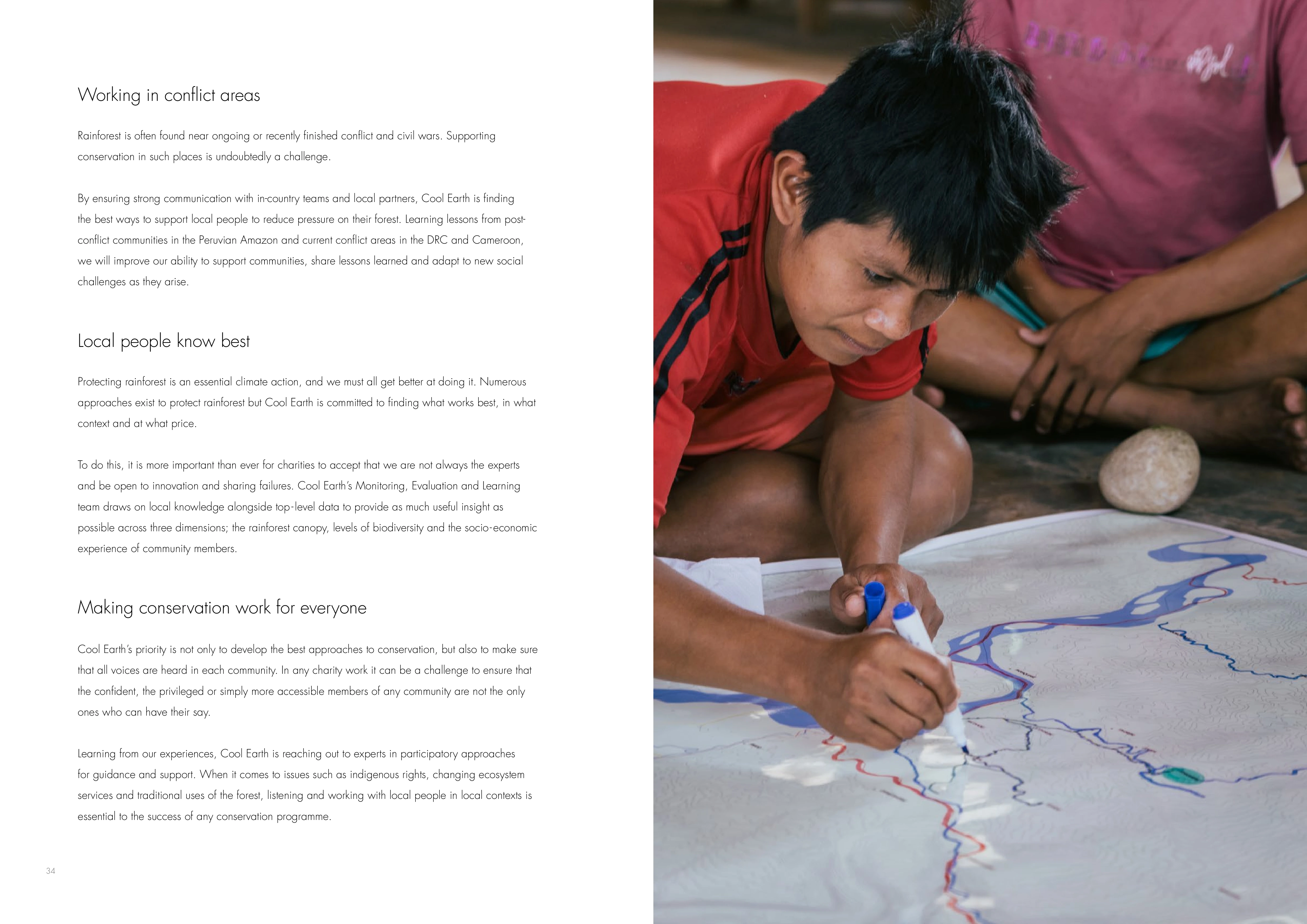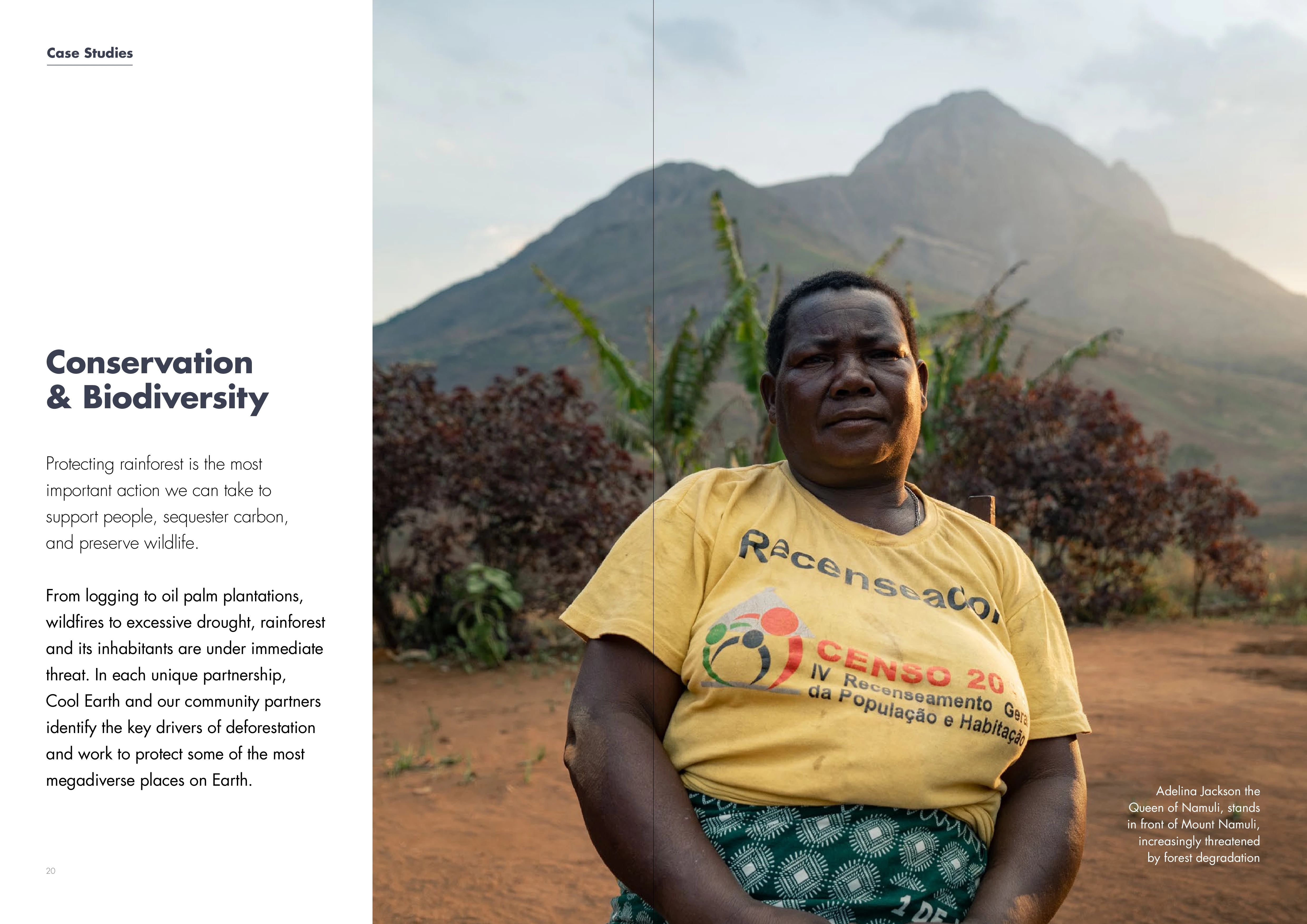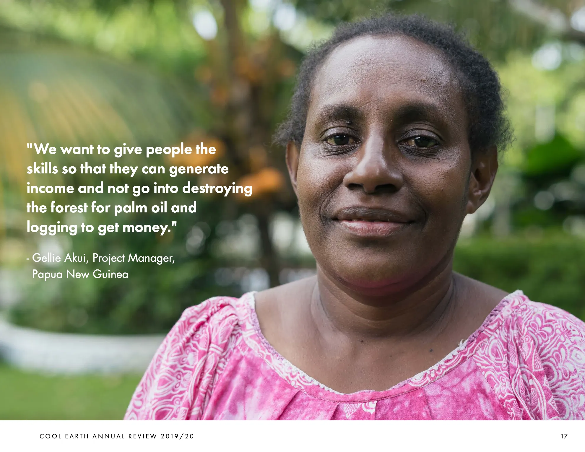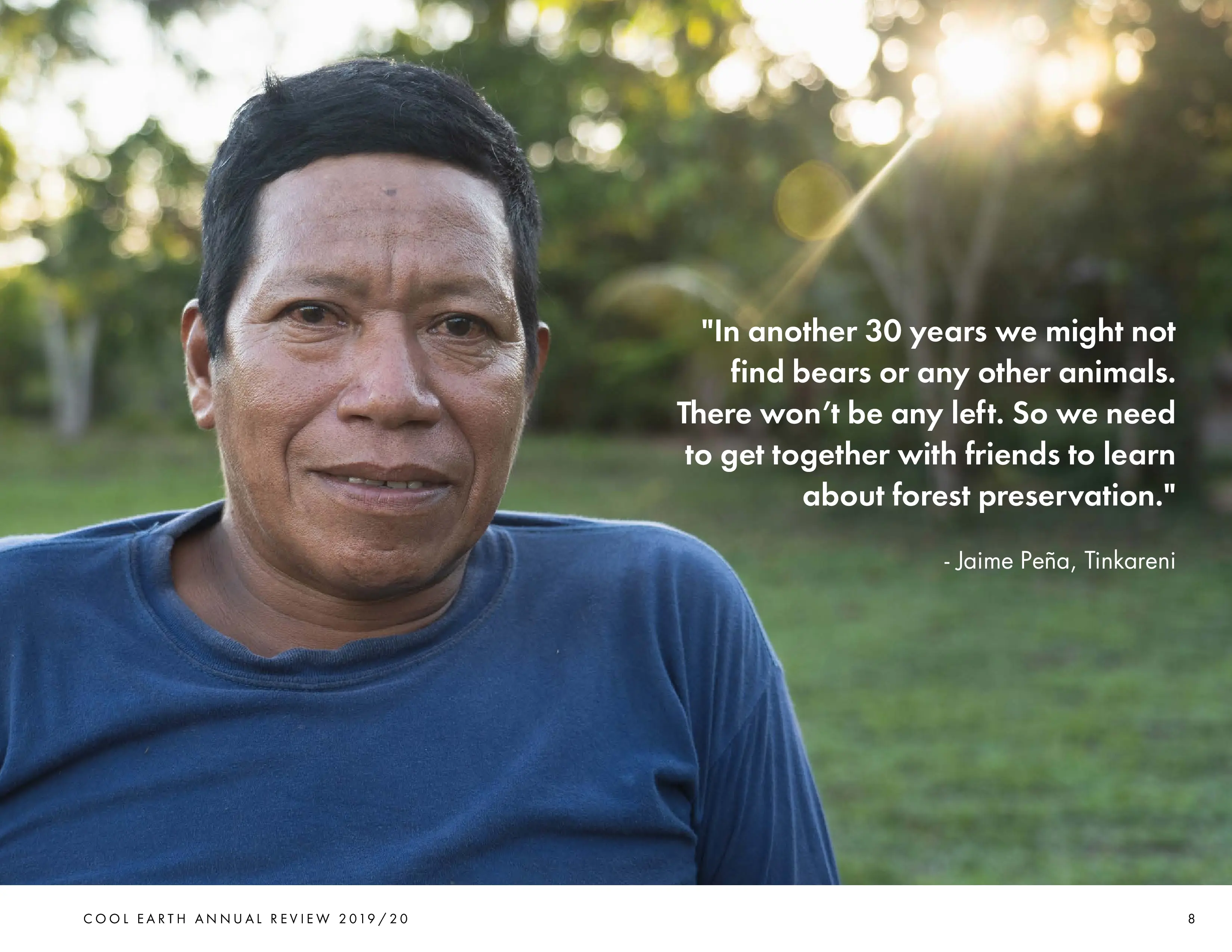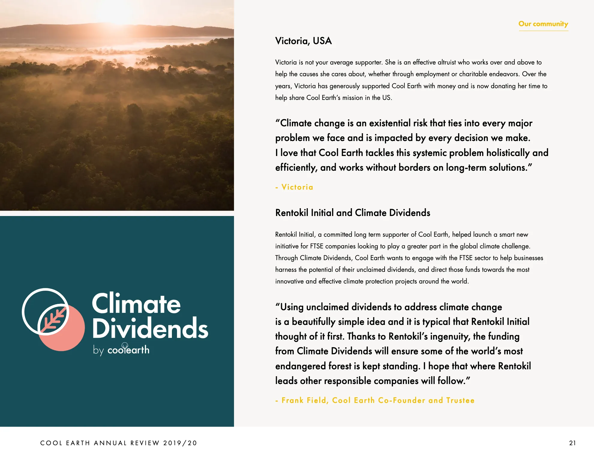 The Annual Review for 2019/2020 designed for Cool Earth to tell people what the charity is set up to do, what projects and activities happened and what it achieved each year.